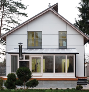 Одним из примеров инновационной экономичной архитектуры является активный дом, построенный в 15-ти км от Минска. По своим энергетическим характеристикам он соответствует классу «А+», и потребляет в два раза меньше энергии, чем требуют нормы*. Такого эффекта удалось добиться благодаря использованию утеплителей на основе каменной ваты ROCKWOOL: материал толщиной 250 мм применялся для конструкции наружных стен и 300 мм - для кровли, внутренние перегородки и полы также тепло- и звукоизолированы. Использование утеплителей на основе каменной ваты ROCKWOOL позволило обеспечить не только низкие теплопотери, но эффективную звукоизоляцию, пожарную безопасность и комфортный микроклимат. Причем аналогичные решения могут быть применимы для реализации любой дизайнерской и архитектурной идеи, как в случае данного белоснежного двухэтажного дома с застеклённой верандой и покатой двускатной крышей.