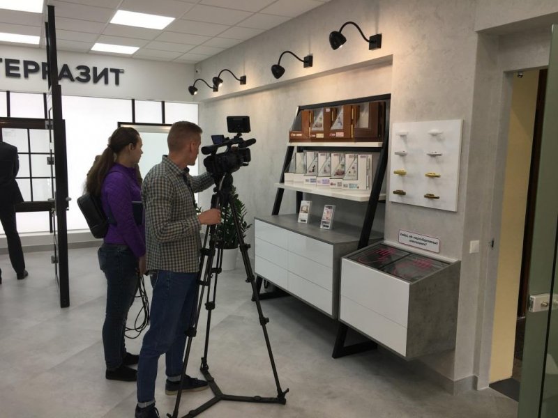 Шоу-рум «Терразит», расположенный по адресу: ул. Горького, д. 91, – первая и единственная в регионе площадка, где представлен практически весь спектр выпускаемой компанией продукции. Посетители могут увидеть окна, выполненные на основе профильных систем REHAU (BLITZ New, GRAZIO, DELIGHT-Design, BRILLANT-Design, INTELIO), прочные и изящные двери, различные интерьерные перегородки, а также цельностеклянные безрамные конструкции для загородных домов. При этом продукция «Терразит» не только демонстрируется в виде готовых образцов, но и максимально интегрирована в интерьер – чтобы гости могли лучше представлять, как она будет выглядеть в уже смонтированном виде. Даже входная группа, выполненная в виде зимнего сада со стеклянной крышей, и почти все стекла в шоу-руме – исключительно собственного производства. Энергоэффективность стеклопакетов можно проверить прямо на месте при помощи специального тестера.