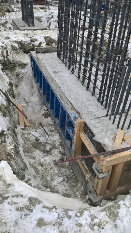 «Фундамент первой очереди жилого комплекса заливался зимой, при температуре минус 13 °C. Использовать наплавляемые материалы в таких условиях невозможно, поскольку требуется основание с влажностью не выше 4 %, достичь которую достаточно затруднительно в зимних условиях. В то же время MasterSeal 754 является мембраной свободной укладки. Её отличительная черта – технология холодной сборки, исключающая необходимость применения открытого пламени горелки или горячего воздуха. Листы соединяются друг с другом с помощью самоклеящихся полос вдоль боковых кромок и отдельных соединительных элементов с бутилкаучуковым слоем. Прочность при разрыве швов практически идентична прочности при разрыве самой мембраны. Монтаж происходит на поверхности основания, влажность которого не имеет значения. После монтажа вертикальных элементов решение представляет собой монолитный эластичный кессон, в котором монтируется армирующий каркас и заливается бетон. А механическое сцепление с мембраной происходит уже под весом монолитной плиты», – объясняет Вячеслав Радзинский, технический специалист компании BASF.