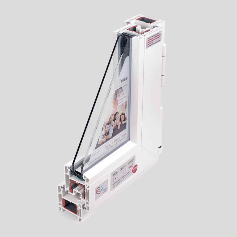 Усовершенствованный профиль THERMO-Design заметно отличается как от своего предшественника, так и от других 60-миллиметровых систем REHAU. Одним из нововведений является увеличенное число воздушных камер – четыре вместо стандартных трёх. Следствием этого стал рост сопротивления теплопередаче (Rо пр), которое в THERMO-Design достигло значительных для своего класса 0,78 м?°С/Вт. Кроме того, профиль имеет уменьшенную высоту непрозрачной части, что делает его оптимальным вариантом для помещений с высокими требованиями к инсоляции.