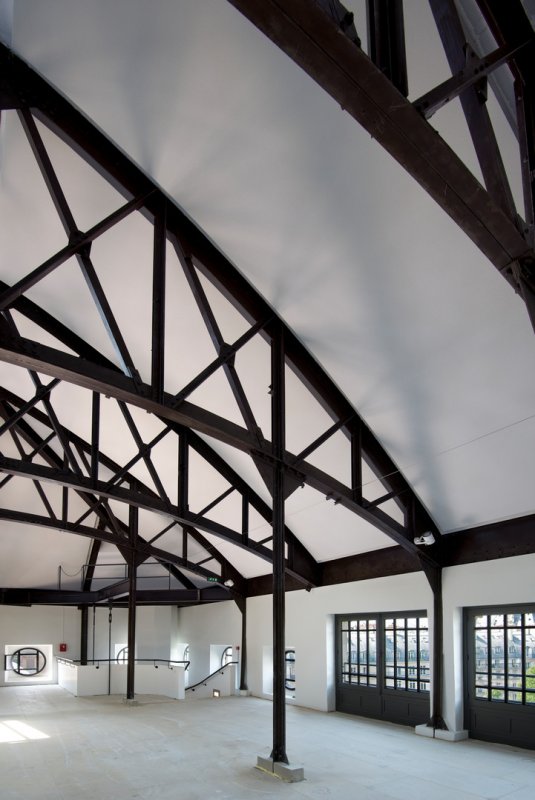 «Мы уменьшили пространство, отведённое для технического оборудования, освободив половину чердака. Взору открылись кованные конструкции, созданные Жюльерном Гюаде в 1900 году», - рассказывает архитектор студии B&A Studio of Architecture. Для оптимального функционирования театра «Комеди Франсез» в новом помещении, по всей площади изогнутого чердака, между металлическими конструкциями, были установлены потолочные панели Rockfon Mono Acoustic. Акустические панели были использованы для улучшения акустического комфорта в помещении и для создания уникального дизайна пространства. Таким образом, чердак театра «Комеди Франсез» оказался привлекательным функциональным пространством, полностью изолированным от звуков расположенного под ним театра.