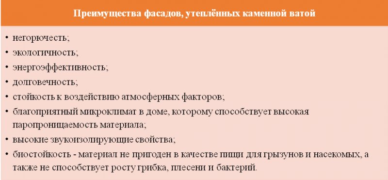 Одним из наиболее популярных материалов является каменная вата. Это продукт природного происхождения, созданный на основе базальтовых горных пород. Каменная вата экологически безопасна, а её волокна выдерживают температуры до 10000С, что позволяет теплоизоляционному слою выступать барьером для распространения огня. С годами такой утеплитель не сжимается и не деформируется, что делает его одним из самых долговечных на рынке – например, плиты РОКФАСАД от ROCKWOOL прослужат не менее 50 лет[3]. Продукт создан специально для устройства «мокрых» фасадов в частных домах: материал обладает оптимальной плотностью для нанесения штукатурки, обеспечивает высокие тепло- и звукоизолирующие свойства и является биостойким, т.е. не пригоден в качестве пищи для грызунов и насекомых и не способствует росту грибка и плесени.