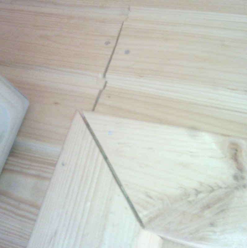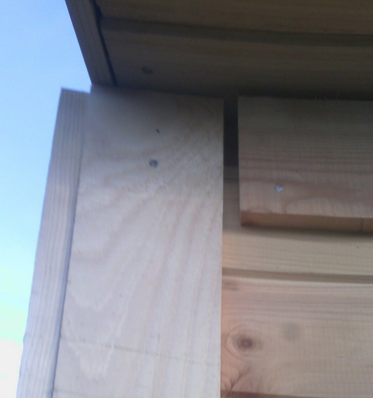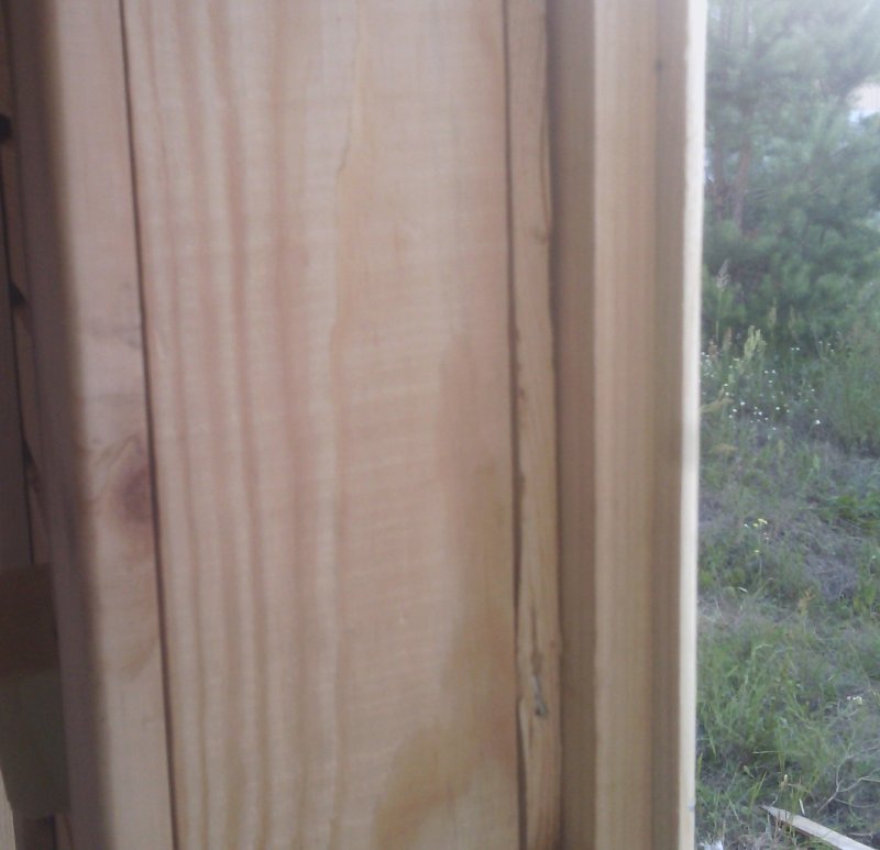 Кривизна: перепад приколоченной к фасаду вагонки оказался 7 см. Подозреваю, что именно такой крепости было пиво, употребленное этими уважаемыми людьми, когда они делали мой шедевр. Самое обидное, что на задней стене вагонка прибита идеально.